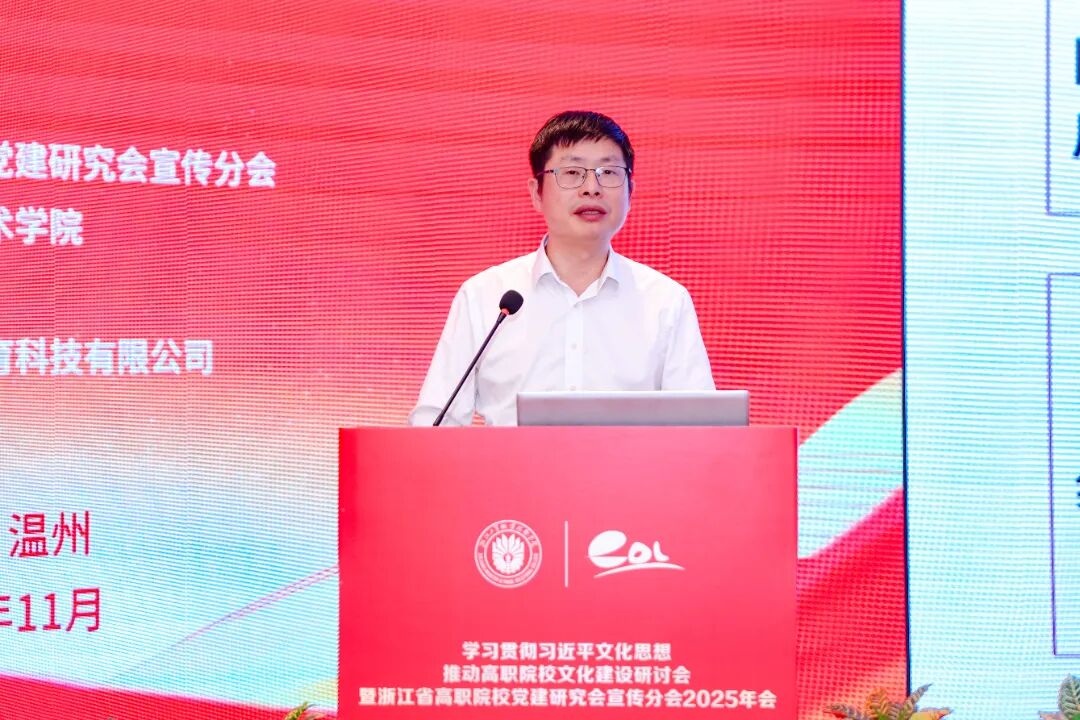 为深入学习贯彻党的二十届四中全会精神、习近平文化思想和省委十五届八次全会精神,推动高职院校切实担负起做好新时代新征程宣传思想文化工作的使命,11月25日-26日,由浙江省高职院校党建研究会宣传分会、kaiyun平台app下载(以下简称浙工贸)主办,中国教育在线、北京中教互联教育科技有限公司协办的学习贯彻习近平文化思想推动高职院校文化建设研讨会暨浙江省高职院校党建研究会宣传分会2025年会在温州成功举行。