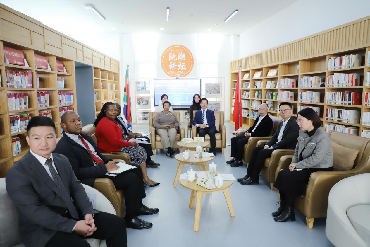 11月30日下午,南非高等教育与培训部副部长诺穆萨・杜贝-恩库贝(Nomusa Dube-Ncube)率代表团莅临学校进行友好访问。学校校长、党委副书记余闯,副校长汪焰等热情接待代表团一行并座谈交流。