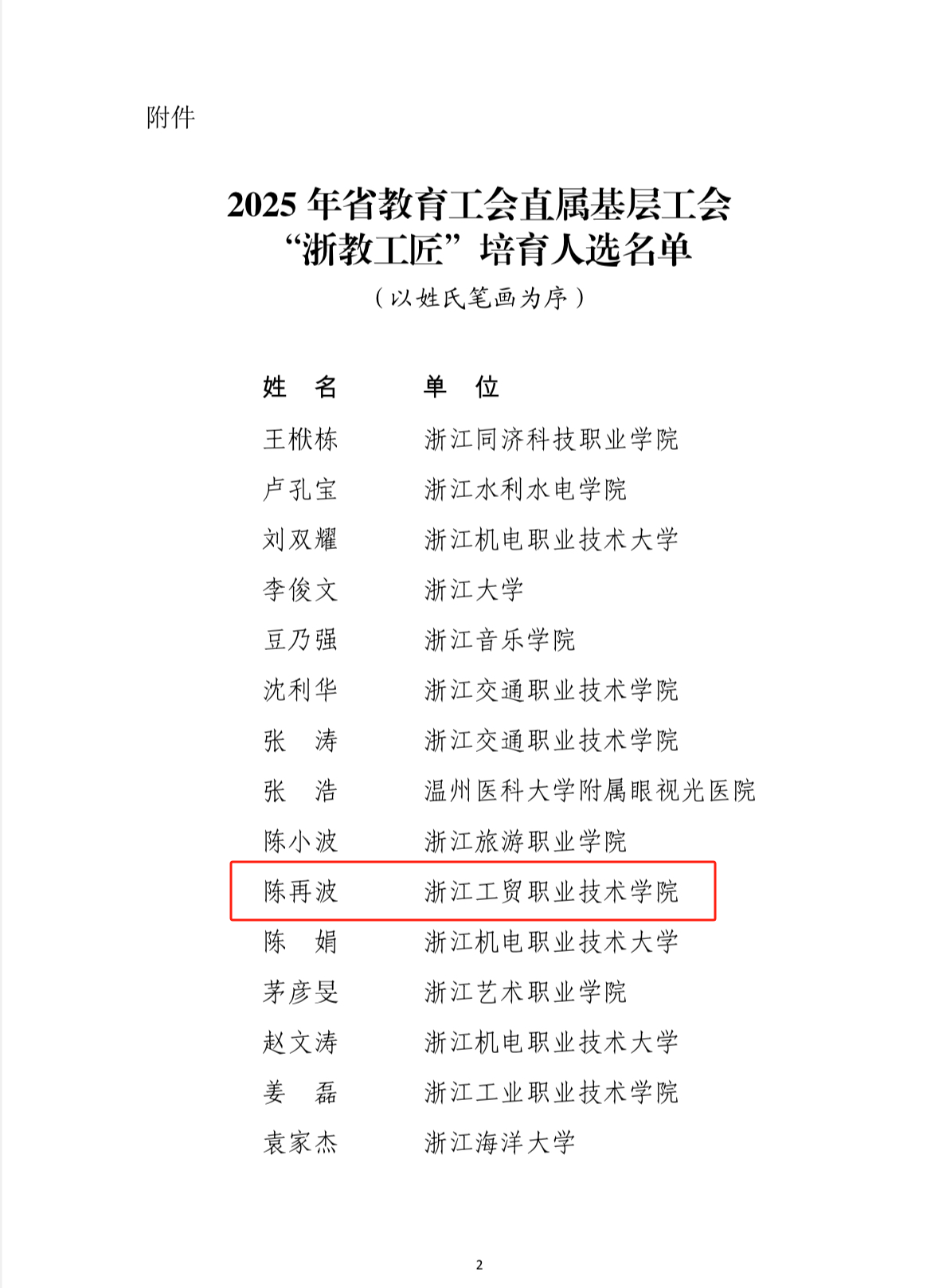 热烈祝贺我校陈再波老师、焦合金老师入选2025年浙江省教育工会直属基层工会“浙教工匠”培育人选!